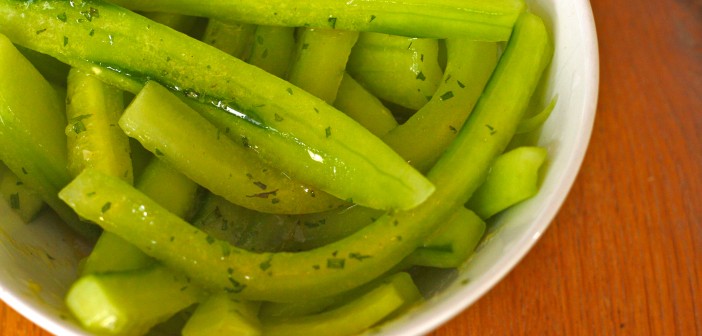 Það er hægt að gera margt úr agúrkum. Hér er ein tillaga sem á mjög vel við grillaðan mat t.d. kjúkling í myntu og kókosmarineringu: