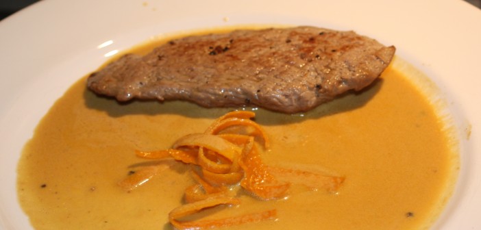 Þessi uppskrift kemur frá Frakklandi og í henni er gert ráð fyrir kálfasteikum sem barðar eru þunnar með kjöthamri. Því miður er ekki hægt að fá kálfasteik í öllum íslenskum kjötborðum þótt víða sé það hægt. Ef kálfasteikur eru ekki til er hægt að nota svínasteikur í staðinn. Látið kjötmeistarann fletja steikurnar út í snitsel eða berjið þær varlega flata með kjöthamri.