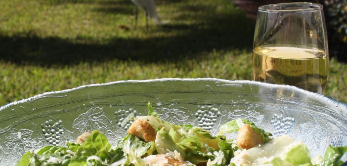Í dag er Caesar salat gert í óteljandi útgáfum. Í þessari hér reynum við hins vegar að vera nálægt þeirri upprunalegu hvað hráefnin varðar, sleppum t.d. ansjósunum, sem eru seinni tíma fyrirbæri.