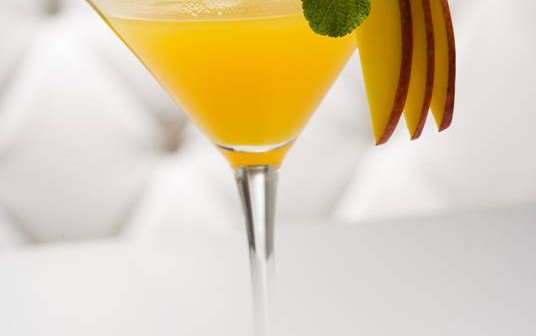 Skreytið með mangósneið og myntu laufi