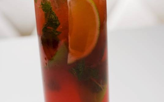 Þetta er flott vodka-útgáfa af Mojito með Absolut Ruby Red en í þeirri útgáfu úr Absolut-línunni er það blóðgreip sem gefur bragðið.