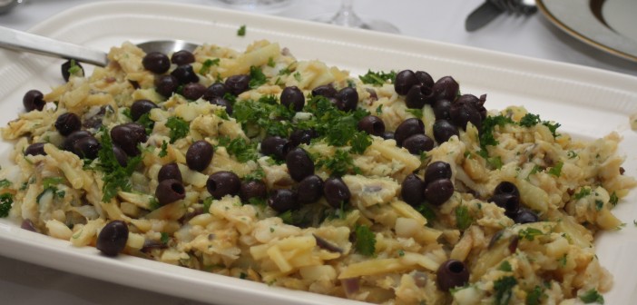 Portúgalar eru snillingar í að matreiða saltfisk rétt eins og Spánverjar og aðferðirnar eru yfirleitt nokkuð frábrugðnar hinum hefðbundnu íslensku aðferðum. Það á til dæmis við hér þótt að meginhráefnin séu kunnug: saltfiskur og kartöflur.