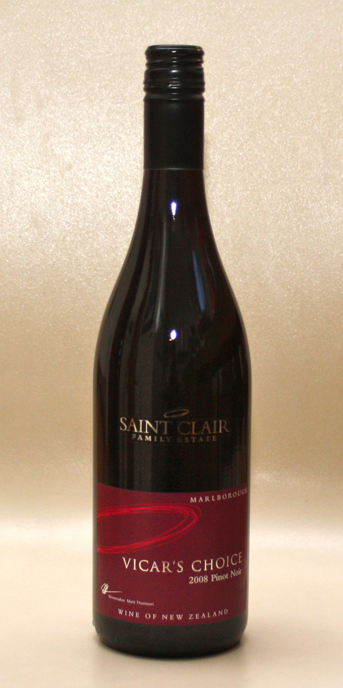 Saint Clair Vicar’s Choice Pinot Noir 2008 er ungur og ávaxtaríkur Pinot, ferskur og sætur trönu- og rifsberjasafi einkennir angan vínsins, fer jafnvel út í rifsberjahlaup. Mild kryddangan. Létt, mjúkt og þægilegt í munni, mild tannín og sýra. Minnir ef eitthvað er frekar á Alsace en Búrgundar-Pinot.