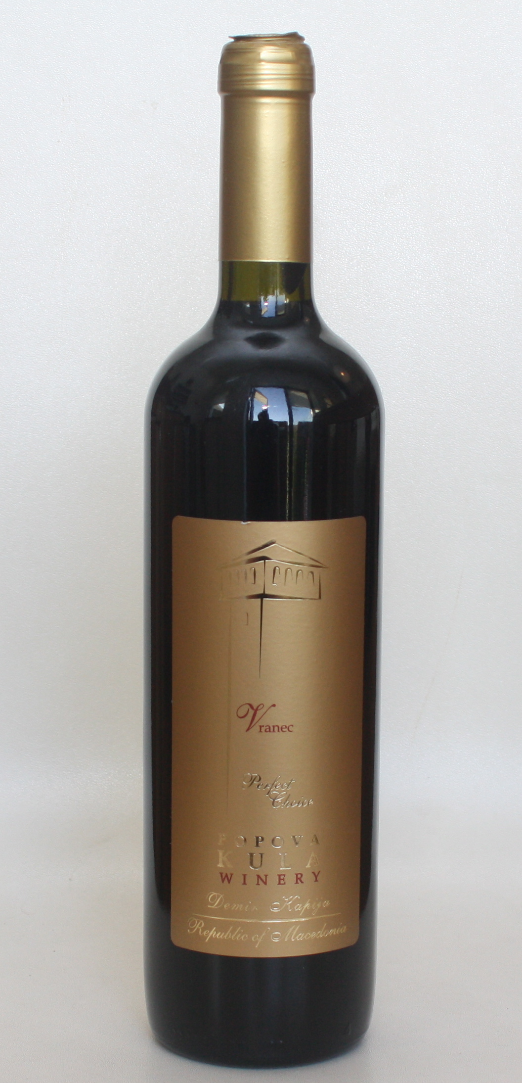 Þrúgan Vranec er ein af meginþrúgum Balkanskagans og ein helsta rauðvínsþrúga Makedóníu, Serbíu og Svartfjallalands. Og það verður að segjast eins og er að hún á fyllilega erindi á markað út fyrir það svæði. Popova Kula Vranec er mjög dökkt, ilmurinn þungur og höfugur með áberandi eik, kaffi og plómusultu. Uppbygging öll þétt, ávöxturinn ber eikina vel og tannín eru mjúk en föst í sér. Stíllinn alþjóðlegur, vínið hefur gott af umhellingu.