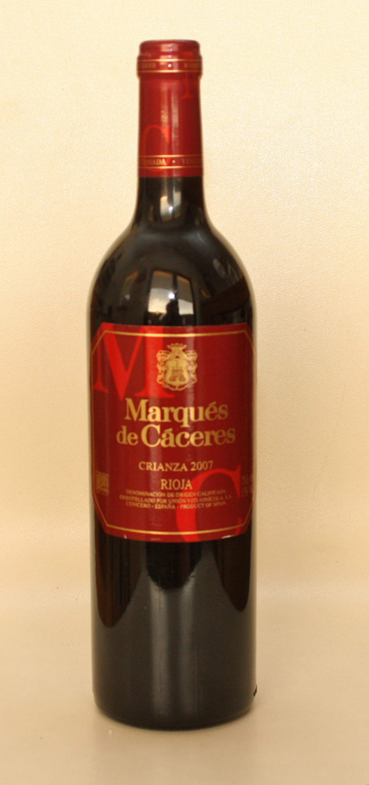 Marques de Caceres hefur fyrir löngu fest sig í sessi sem eitt af traustari vínhúsum Rioja. Þetta Crianza-vín er dökkt út í gegn, heitur dökkur ávöxtur, bláber, sólber en einnig karamella, vanilla, nokkuð sýrumikið. Ágætis matarvín.