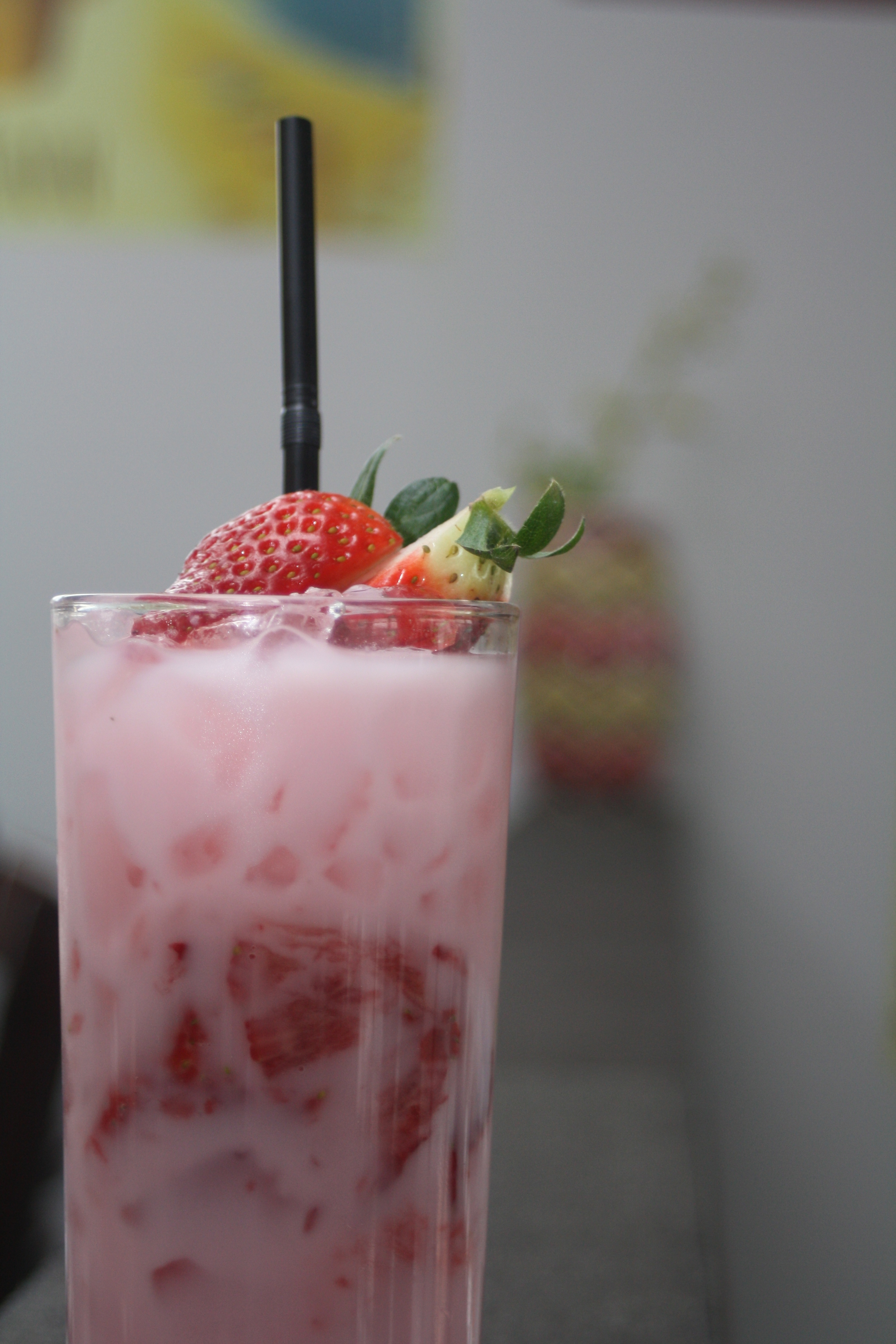 Byrjið á því að setja jarðarberin í highball-glas og „möddlið“ þau. Bætið öðrum hráefnum út í. Fyllið með muldum klaka. Hrærið vel saman.