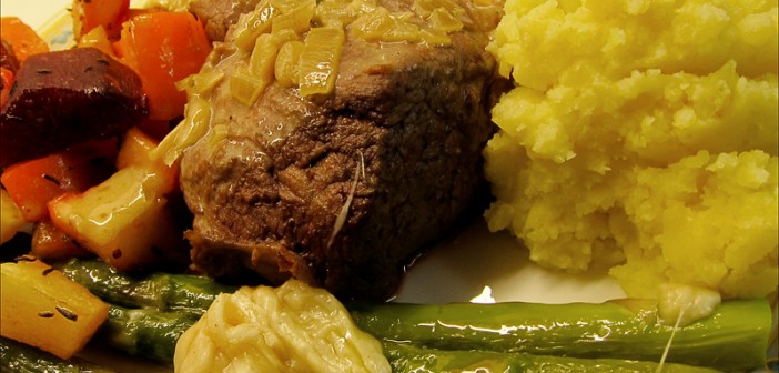 Fátt slær við íslenskri nautalund þegar hún er uppá sitt besta, meyr og safarík, bleik og lungamjúk. Hér er brugðið út af dæmigerðu meðlæti og lundin matreidd í félagi við smjörsteiktan ferskan aspas með parmesanosti og bökuðum rótarávöxtum ásamt hvítlaukskartöflumauki og koníakssinnepssósu.