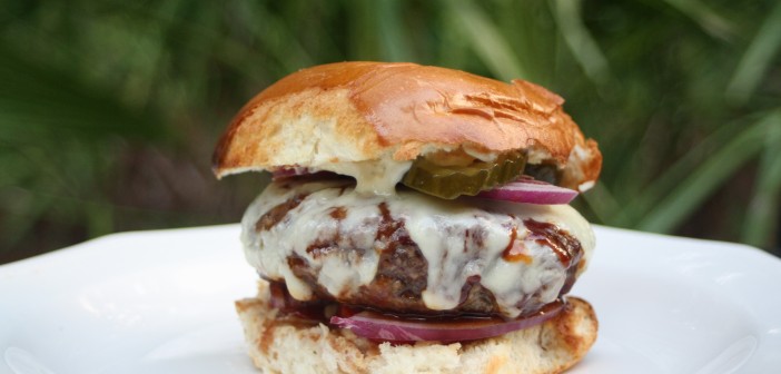 Blandið saman (nema ostinum) og mótið í 6 borgara. Geymið í ísskáp fram að eldun.