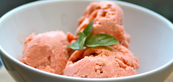 Rabarbari er mjög fínn til ísgerðar og þessi uppskrift áskotnaðist okkur á nýlegri ferð um Norðurland þar sem boðið var upp á þennan líka fína ís eftir matinn. Eini gallinn við rabarbarann í ísgerð er að hann er ekki mjög fallegur á litinn, grágrænn lýsir því líklega best. Nokkrir dropar af matarlit bjarga því hins vegar.