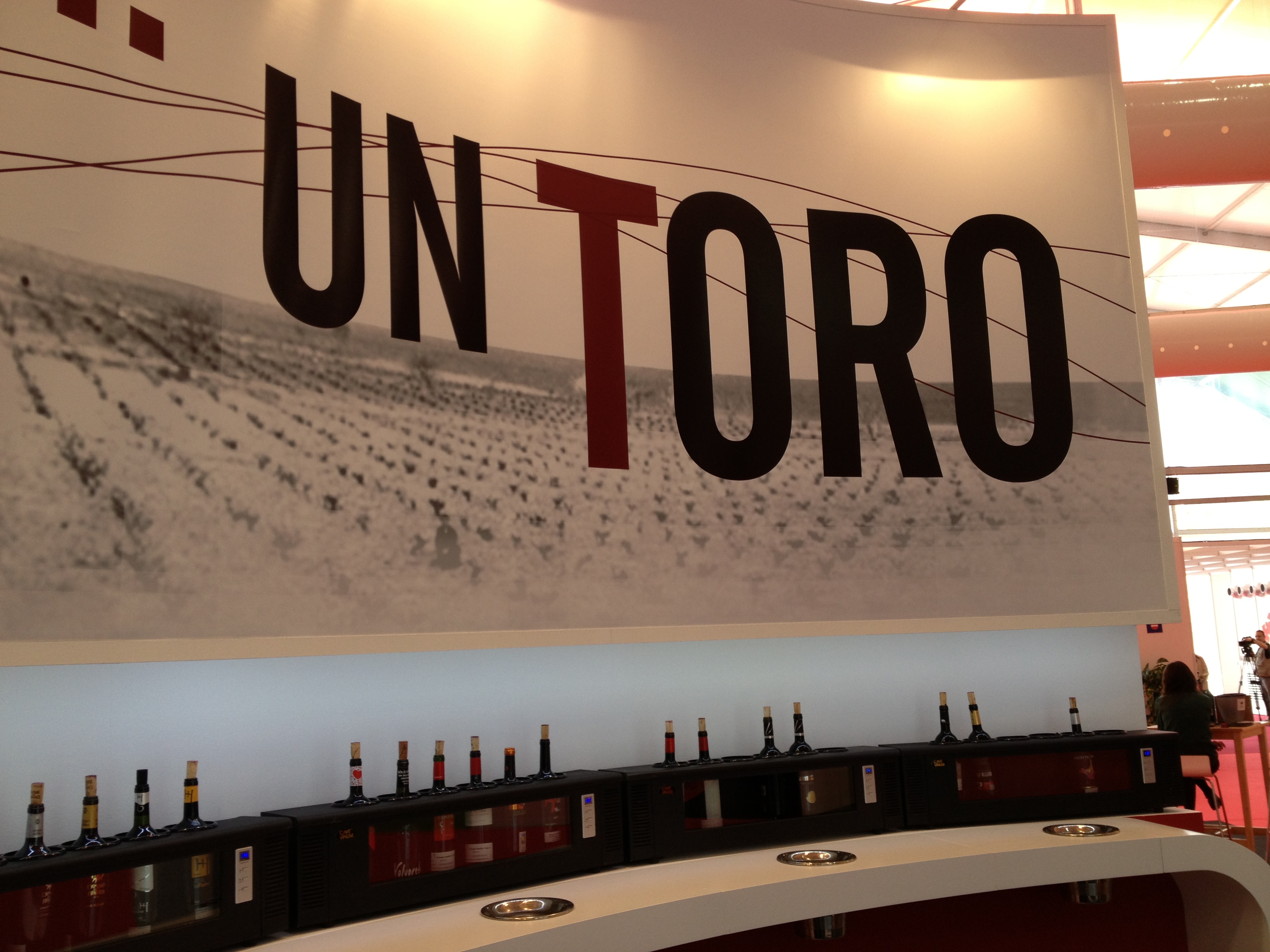 Toro er til dæmis eitt þeirra svæða sem hvað mest er talað um í dag, lítið svæði  á hásléttunni í norðvesturhluta Castilla y Leon, ekki svo langt frá Ribera. Þetta verður seint kallað ungt svæði, þarna hafa verið gerð vín frá því á fyrstu öld og meginþrúgan er Tinta di Toro – öðru nafni Tempranillo. En loftslagið er öfgakennt meginlandsloftslag, með miklum hitasveiflum milli árstíða og innan sólarhringsins. Þetta hefur heillað marga vínræktendur sem þarna geta gert kröftug og mikil rauðvín sem þurfa ekki að kosta mikið. Það var því áhugavert að koma við á Toro-básnum.