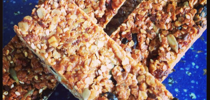 Ég var að taka til í eldhússkápunum hjá mér um daginn og rakst þar á heila krukku af möndlusmjöri, fullan poka af þurrkuðum apríkósum og nokkra átekna poka af hinu ýmsu fræjum. Þetta hráefni (ásamt nokkrum til viðbótar) gera fullkomnar orkustangir. Ég hafði nú einhvern veginn hugsað mér að strákarnir mínir gætu kippt þessu með sér í nesti eða fengið sér fyrir eða eftir íþróttaæfingu – en þetta féll nú í frekar grýttan jarðveg hjá þeim – líklega of hollt á bragðið. Mér finnst þær aftur á móti rosalega góðar og þarf virkilega að hemja mig og borða ekki yfir mig af þeim.