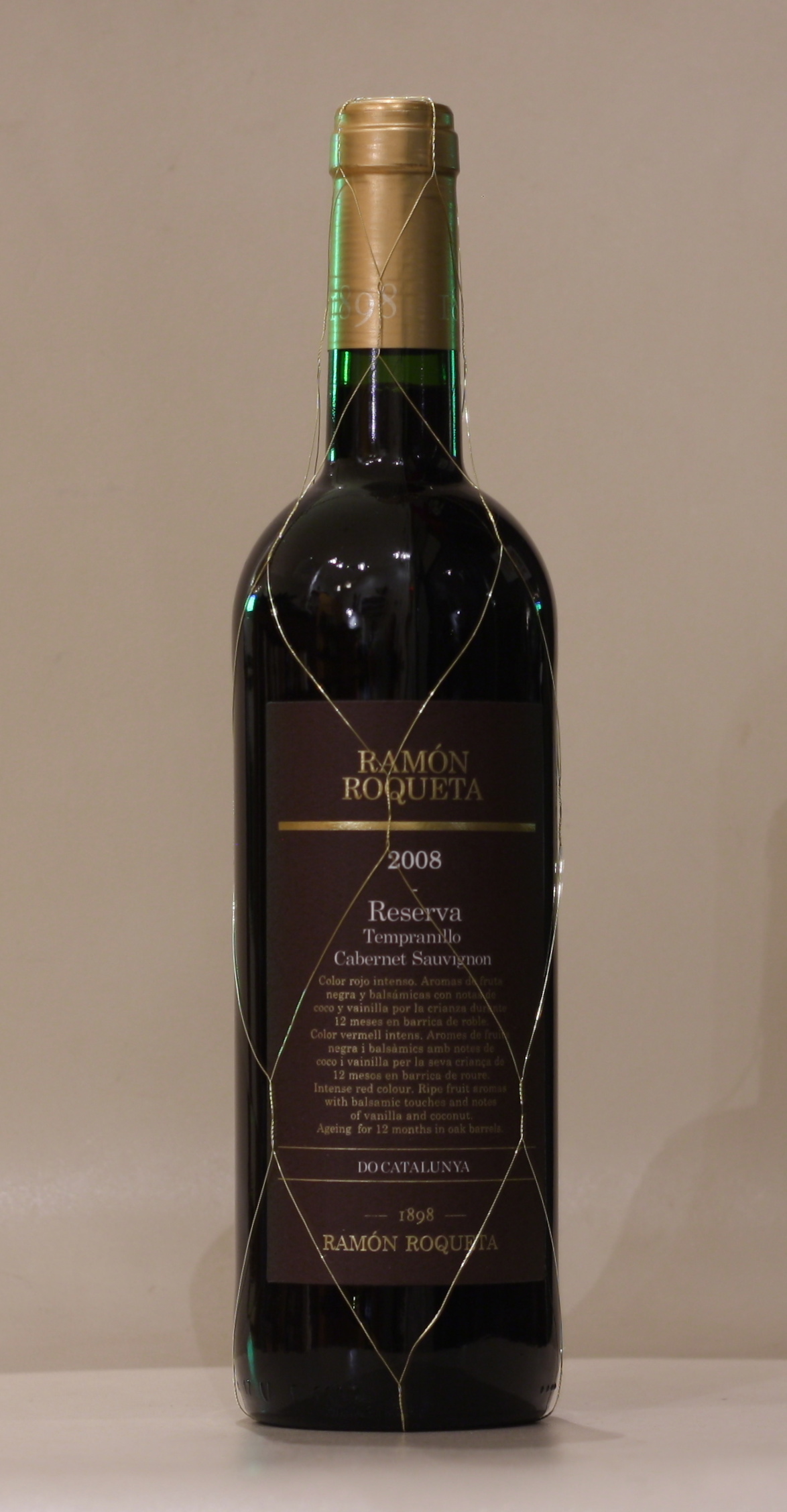 Þeir mega eiga það Spánverjar að oft taka þeir ómakið af þeim sem vilja smá þroska í vínin að geyma þau fyrir þau. Þó að þetta Reserva-vín frá Ramon Roqueta sé ekki dýrt hefur það fengið fimm ára geymslu og er komið með góðan, byrjandi þroska sem má sjá í litnum. Mild angan af sultuðum rifsberjum og skógarberjum, vanilla og kaffi. Langt, fylgið sér og nokkuð tannískt, löng, sýrumikil ending. Fínasta matarvín.