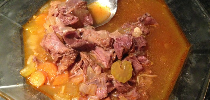 Er ekki kominn tími á eitthvað ódýrt svona eftir hátíðarnar? Þessi súpa er ágætis tilbreyting við venjulega íslenska kjötsúpu og hreint ekki verri. Uxahalar fást í Kolaportinu á fínu verði.