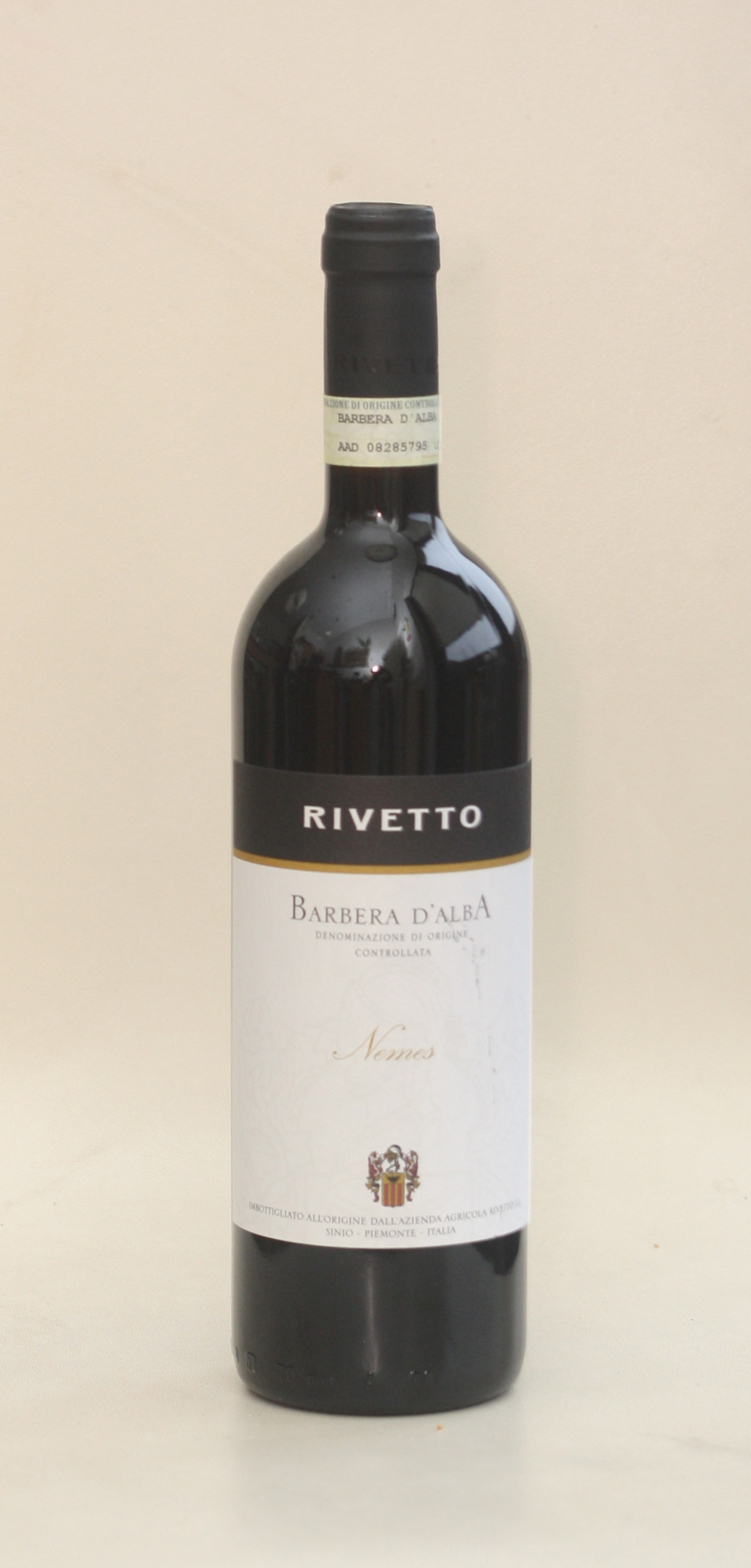 Nemes er eitt af vínum Rivetto úr þrúgunni Barbera. Dökkrautt, út í fjólublátt. Í nefi reykur og leður, skarpt, þurrt og ungt. Ávpxturinn dökkur og þurr, krækiber. Hefur góð sýru eins og títt er með Barbera, ekta matarvín, með t.d. góðu risotto.