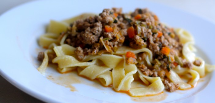 Það sem við myndum kalla kjötsósu með pasta kalla Ítalír ragú. Þekktasta ragú-sósan er auðvitað ragú alla Bolognese en uppskrift að klassísku Spaghetti Bolognese má finna hér. Það er hægt að gera ragú með margvíslegu kjöti og að sjálfsögðu eru til nokkur afbrigði úr kálfakjöti. Kálfahakk má fá hjá hjálpsömum kjötborðum með smá fyrirvara (Melabúðin hefur reynst vel) og síðan er auðvitað hægt að kaupa hvaða kálfavöðva sem er og hakka hann niður.