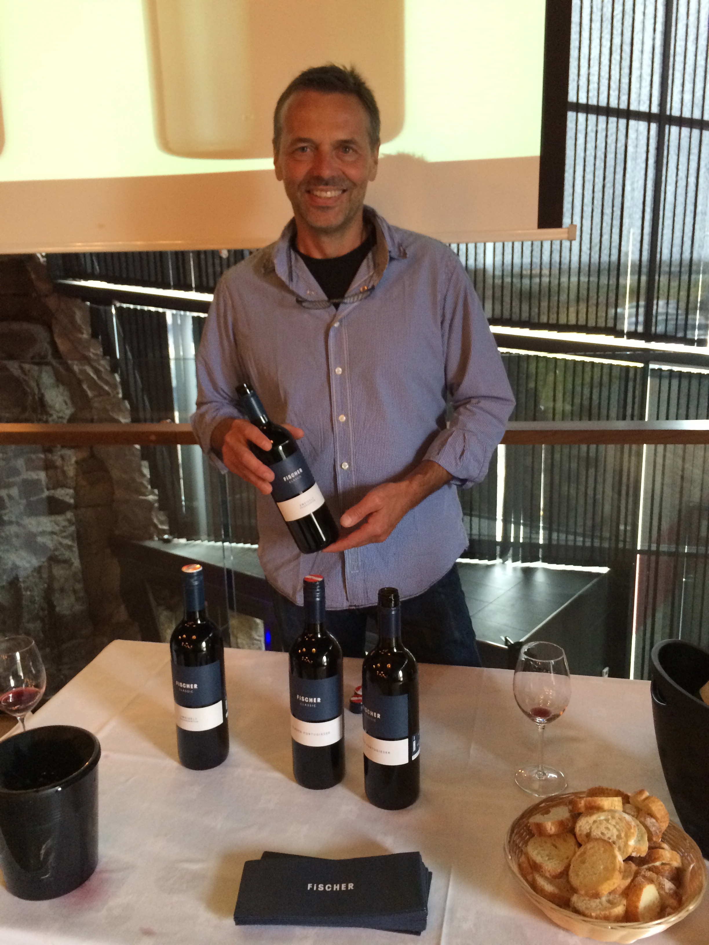 Christian Fischer frá vínhúsinu Fischer í Austurríki var einnig á staðnum og kynnti nokkur vín, bæði rauð og hvít. Fischer framleiðir vín í héraðinu Themenregion sem er eitt heitasta víngerðarsvæði Austurríkis. Hvítvínið úr austurrísku þrúgunni Gruner Veltliner var létt, með þægilegum mildum ávexti og örlitlum reyk. Thermenregion er í heitasta lagi fyrir Gruner Veltliner og segir Fischer að til að viðhalda ferskleika vínsins séu þrúgurnar tíndar snemma og með því fáist létt, þægilegt og ferskt vín. Hann sýndi þarna líka vín úr þrúgunum Blauer Portugieser og Zweigelt úr Classic-línunni en sú síðarnefnda er algengasta rauðvínsþrúga Austurríkis. Helmingur heildarframleiðslu Fischer er einmitt Zweigelt-vín í mismunandi gæðaflokkum.