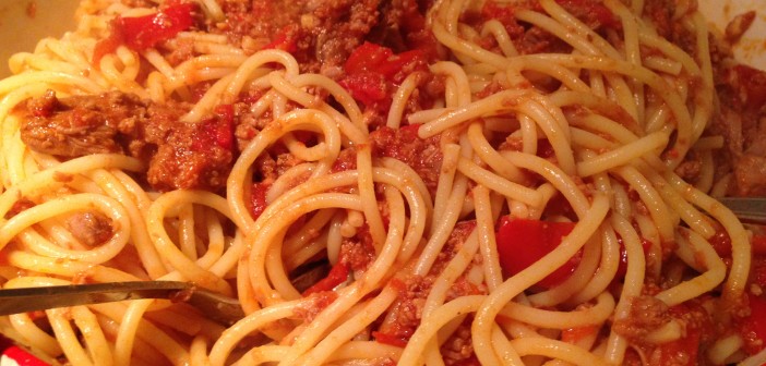 650 g gítarpasta/spakettí (í Frú Laugu fæst alveg massagott pasta í þetta)