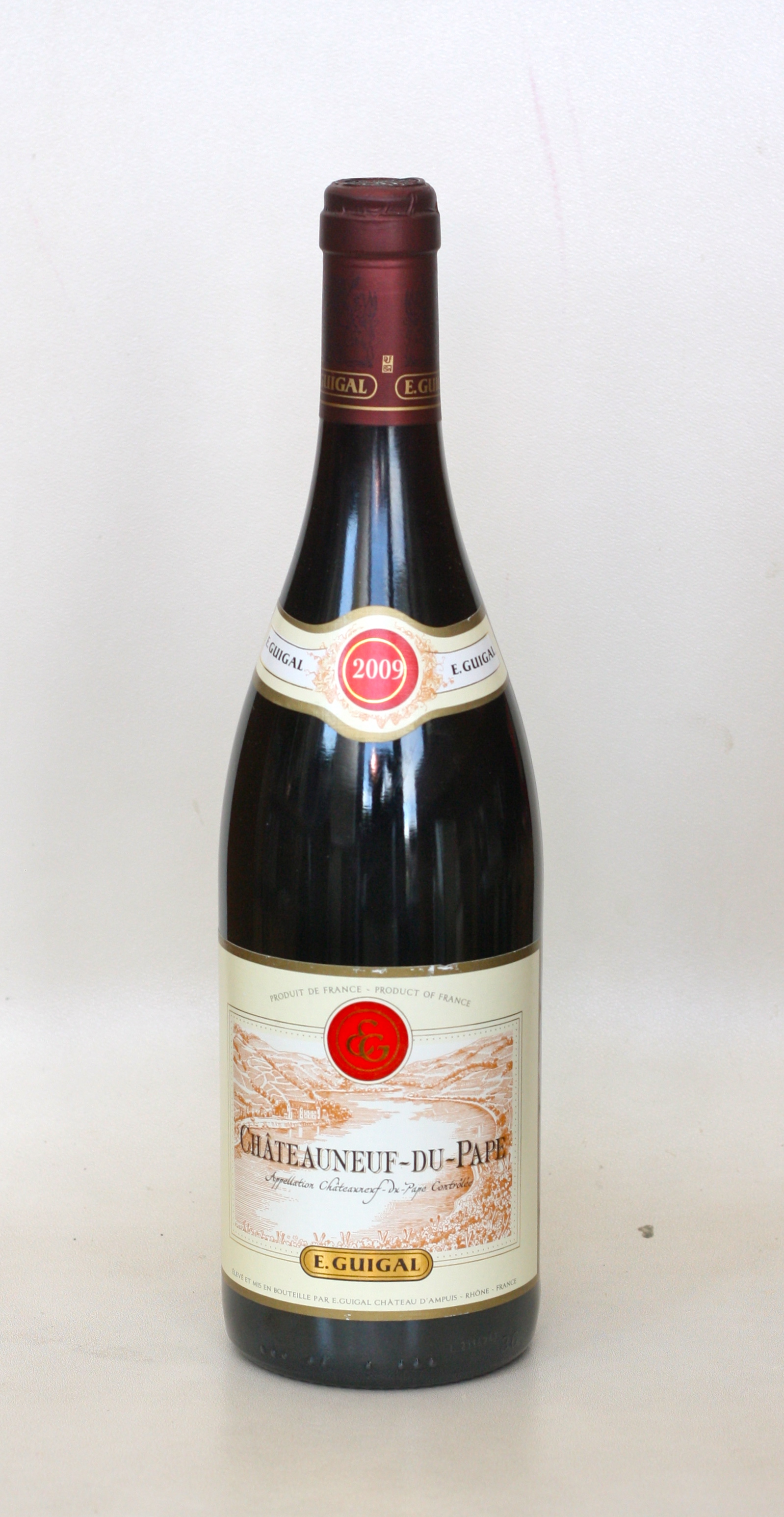 Marcel Guigal er hinn ókrýndi konungur Rónardalsins og vínin hans eru undantekningarlaust tæknilega fullkomin og glæsileg. Þekktastur er hann fyrir einnar ekru Cote Rotie-vínin en nánar má lesa um þetta merkilega vínhús með því að smella hér. Chateauneuf-du-Pape vínið frá Guigal er með ríkjandi Grenache í blöndunni, heil 75% ásamt 10% Syrah og 10% Mourvédre auk þess 5% samanstanda af öðrum þrúgum héraðsins.