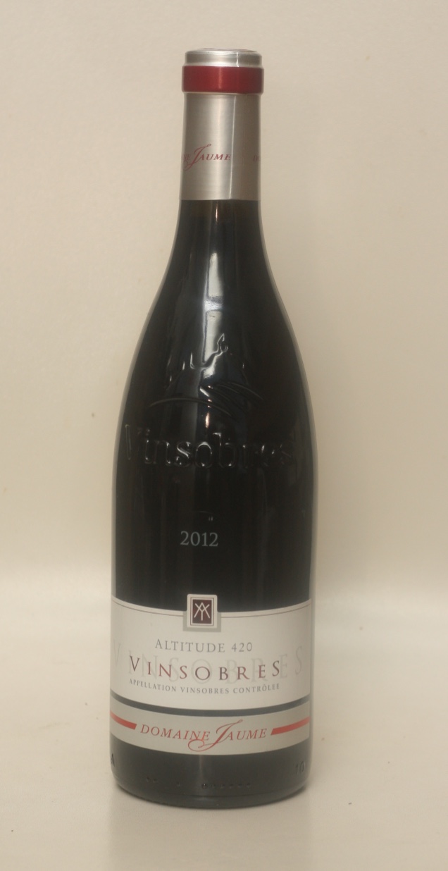 Þetta vín frá Domaine Jaume er auðkennt sem Altitude 420, sem að vísar til þess að ekran sem þrúgurnar eru ræktaðar á er í 420 metra hæð yfir sjávarmáli. Litur vínsins er út í fjólublátt, dökk ber, sólber, kirsuber, bláber, fjólur, jörð, míneralískt. Það hefur góðan kraft, staðföst tannín og flottan ferskleika sem að Syrah-þrúgan veitir. Virkilega gott Rhone-vín, tilvalið með lambi og kryddjurtum. Ekki bera fram of heitt, svona vín njóta sín best við um 18 gráður.