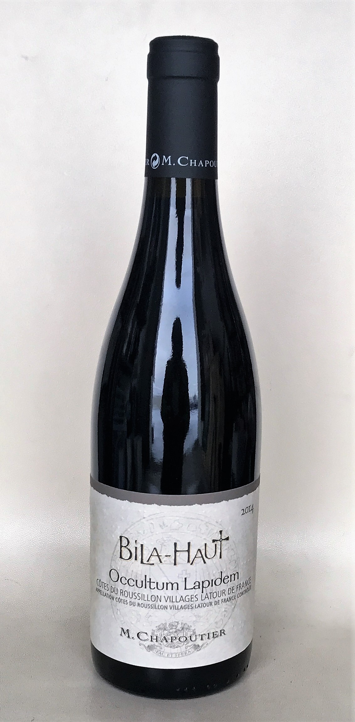 Michel Chapoutier er einn þekktasti víngerðarmaður Frakklands og þekktastur fyrir hin mögnuðu Hermitage-vín sín frá Rhone. Hann teygir hins vegar anga sína víða um heim þegar kemur að víngerðinni og Bila-Haut eru vín frá Languedoc í suðurhluta Frakklands. Occultum Lapidem er blanda úr Syrah og Grenache, Þetta er stórt og mikið Miðjarðarhafsvín með dökkum, heitum berjávexti, krækiber og sólber, villtar, sólbakaðar kryddjurtir, rósmarín en einnig þurr blómaangan. Þurrt og kröftugt, dimmt og jarðbundið, þétt sýra og tannín.