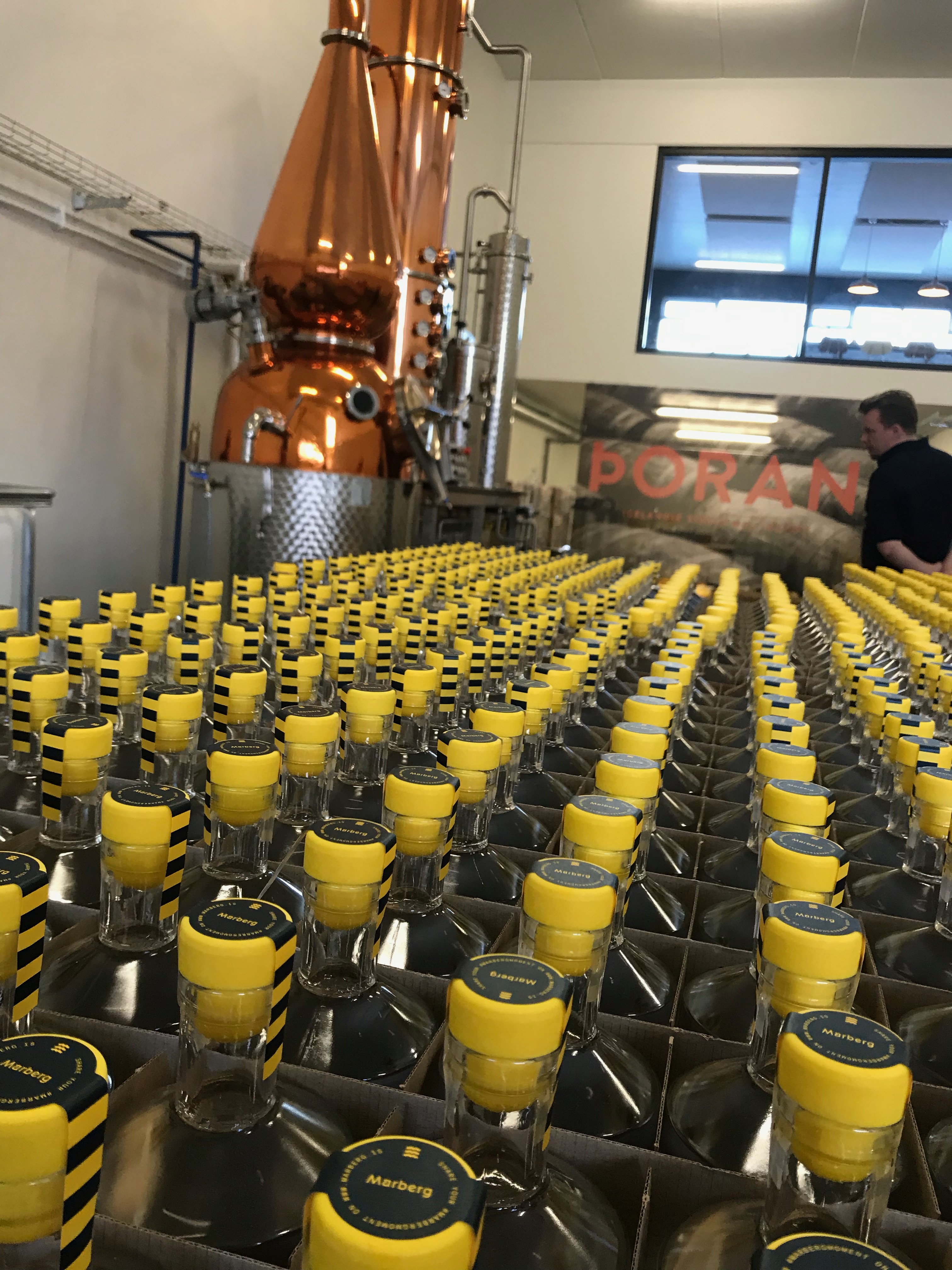 Nú er Þoran löngu komið af hugmyndastiginu og hefur komið sér vel fyrir í glæsilegu húsnæði í Hafnarfirði þar sem settar hafa verið upp fullkomin eimingartæki frá þýska framleiðandanum Muller í Oberkirch-Tiergarten. Búnaðurinn er þannig samsettur að hann getur eimað jafnt ljóst áfengi á borð við gin sem viský.