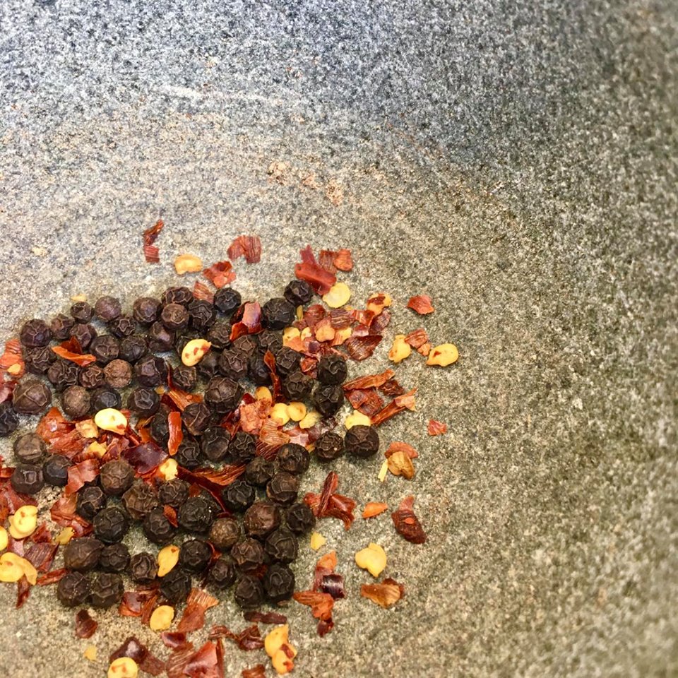 - 1 msk svartur pipar mulin í mortél