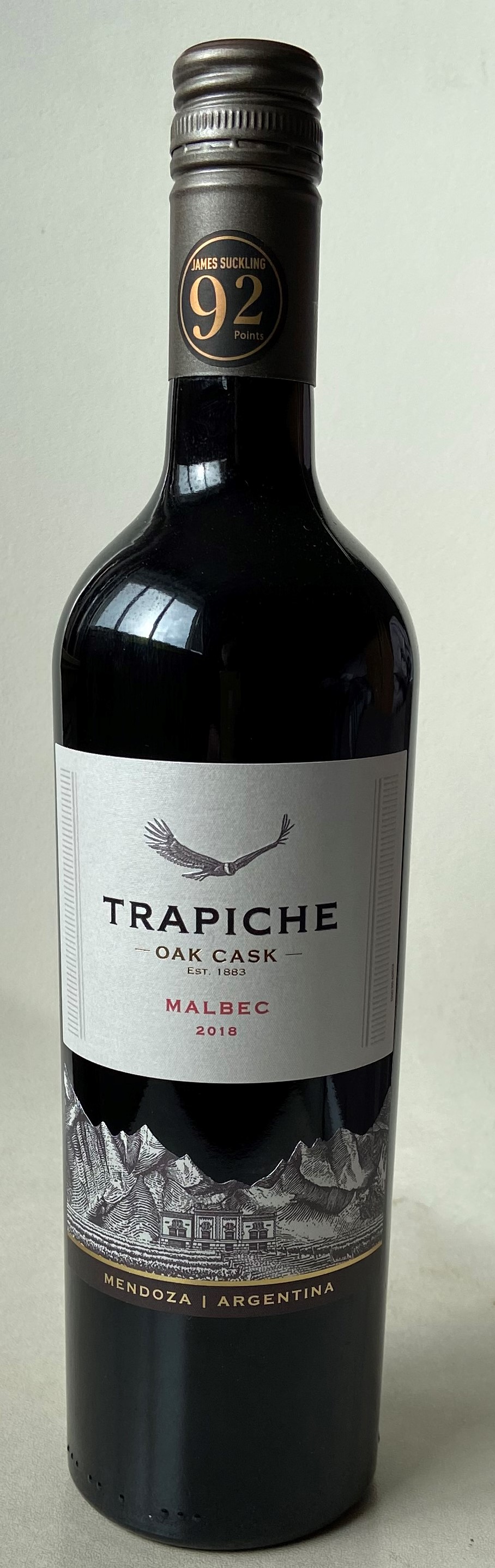 Trapiche er með elstu vínhúsum Argentínu og hefur verið mjög umsvifamikið í Mendoza frá fyrri hluta nítjándu aldar. Í dag á Trapiche á annað þúsund hektara af vínekrum og á í samtarfi við nokkur hundruð vínbændur um kaup á þrúgum. Vínið Oak Cask Malbec er eins og nafnið gefur til kynna gert úr Malbec-þrúgunni, sem er meginþrúga Argentínu í rauðvínum, og það hefur legið í eikarámum um nokkurra mánaða skeið fyrir átöppun. Þetta er ferskt og fínt rauðvín, dökkrauður ávöxtur áberandi, dökk kirsuber, berjabaka og mildur viður og vanilla, mjúkt og þægilegt í munni, fínleg tannín.
