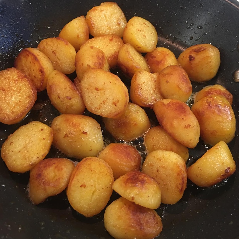 Góðar steiktar kartöflur og steiktir sveppir líka er fullkomið meðlæti.