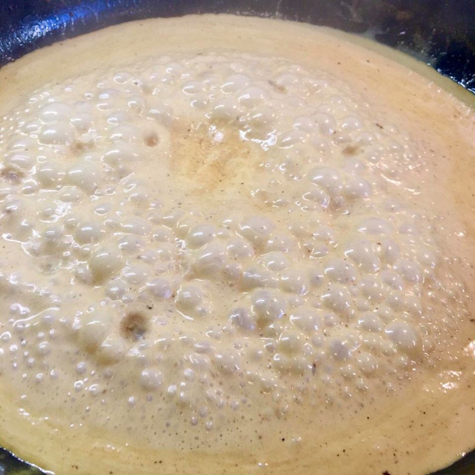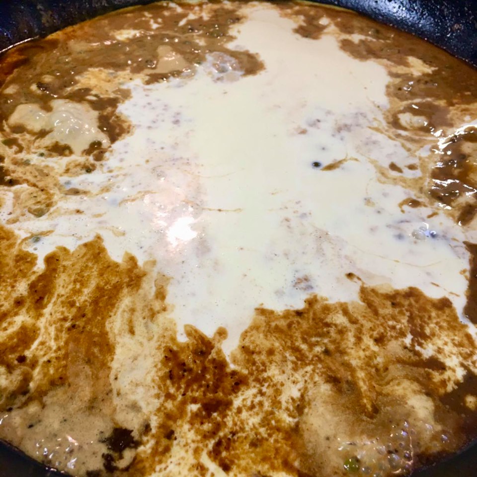 Eftir að steikurnar hafa verið teknar úr pönnunni hefjið þá sósugerðina.