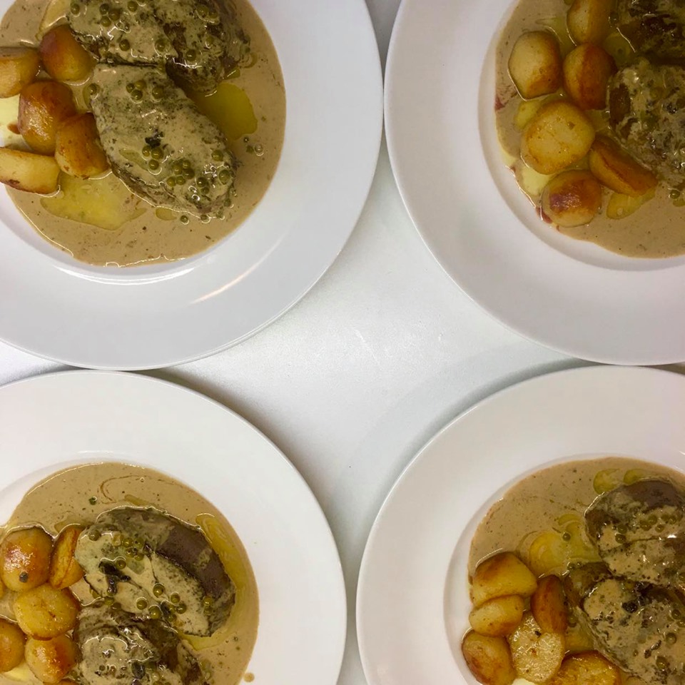 Filet Mignon au poivre vert eða filet mignon með grænpiparsósu er eins franskt og það verður. „Þetta er klassísk uppskrift sem stendur alltaf fyrir sínu. Veislumatur,“ segir Hákon Már. „Í grunnin mjög skemmtilegt að matreiða og frekar einfalt þannig lagað – þetta er líka veislumatur sem er fljótlegt að elda! Hann þarf ekki mikinn tíma og mikla fyrirhöfn. Bara réttu hráefnin og handtökin.“