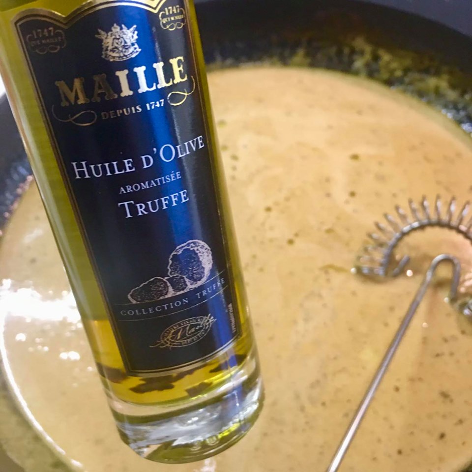 Á myndum má sjá hvernig ég gerði þessa útfærslu með trufflubragði. Ég notaði trufflusmjör, trufflusinnep og dass truffluolíu. Þessar vörur sem ég notaði eru mildar … og ekkert of mikið trufflubragð.  En þetta er smekksatriði. Alveg hægt að gera uppskrift með eða án trufflubragðefna.
