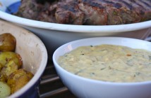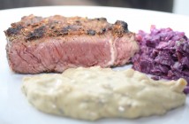 Karamelliseraður laukur, rjómi og gráðaostur. Smá timjan. Þetta er ekki mikið flóknara en það en sósan hentar hvað best með grilluðu nautakjöti, t.d. ribeye eða nautalund.