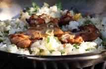 Asísku brögðin passa mjög vel fyrir grillaðan kjúkling. Kryddlögurinn fyrir kjúklinginn er taílenskur í stílnum en hrísgrjónin meira í anda kínverska eldhússins.