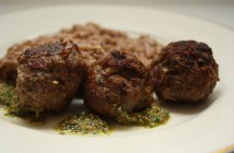 Það er svolítið grískur fílingur í þessum kjötbollum með myntunni og kanilnum. Risottóið hins vegar ítalskt og pestóið með kóríander og engifer kalifornískt.