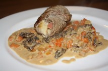 Kálfasnitsel með myrkilsveppum að hætti Franche-Comté