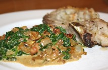 Þetta er kjarnmikill og haustlegur réttur þar sem beikon og spínat eru í aðalhlutverki. Hér erum við með svínakótilettu með spínatinu en það hentar einnig vel með t.d. lambakjöti og hreindýri.