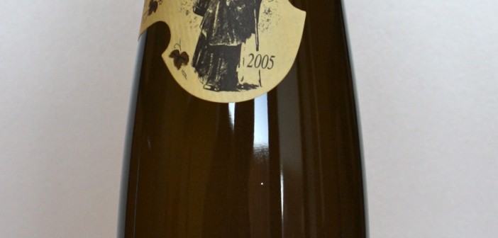 Domaine Weinbach Cuvé St. Catherine 2005 er Pinot Gris sem endurspeglar þetta vel. Kryddað með hunangi, bragðsprenging í nefi, ljúffengur, sætur ávöxtur, vínið þurrt en samt með þeirri dýpt og þeim þunga sem einkennir vendange tardive-sætvínin.