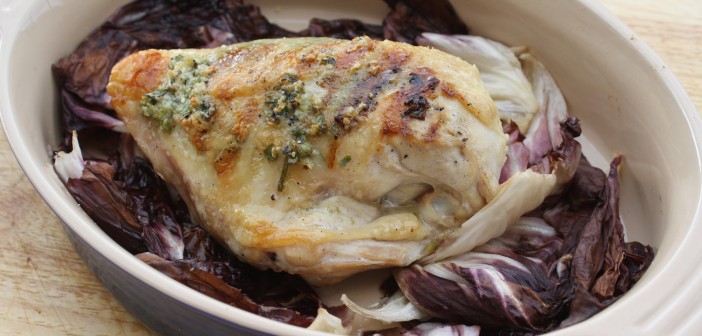 Það er best að nota kjúklingabringur á beini í þessari uppskrift. Ef þið finnið ekki slíkar er alltaf hægt að búta heilan kjúkling niður og grilla lærin með.