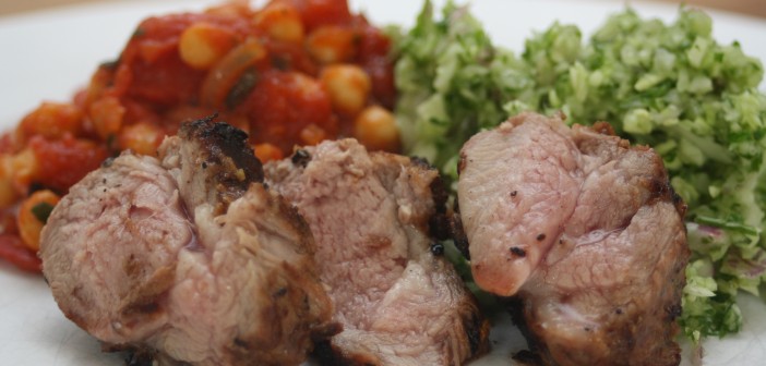 Grillið lambið og berið fram með kjúklingabaununum og klassísku kálsalati.