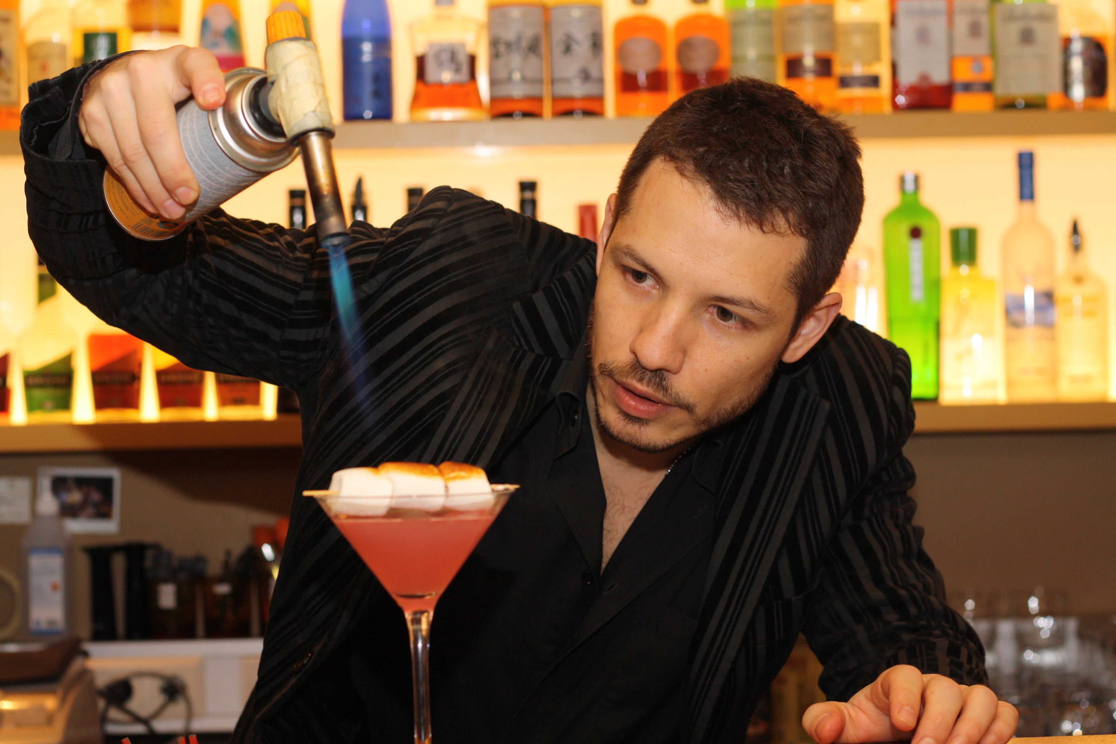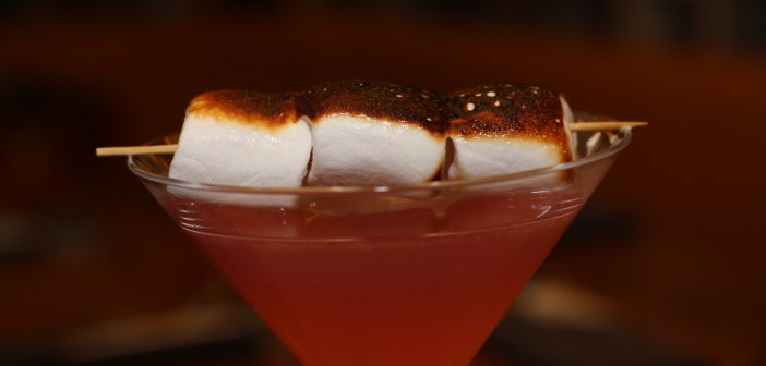 Kokteilar geta verið algjört nammi og hér er beinlínis algjört nammi með, appelsínulíkjör, sykurpúðasíróp og grillaðir sykurpúðar sem hægt er að njóta hvort sem er með drykknum eða þá narta í á eftir.