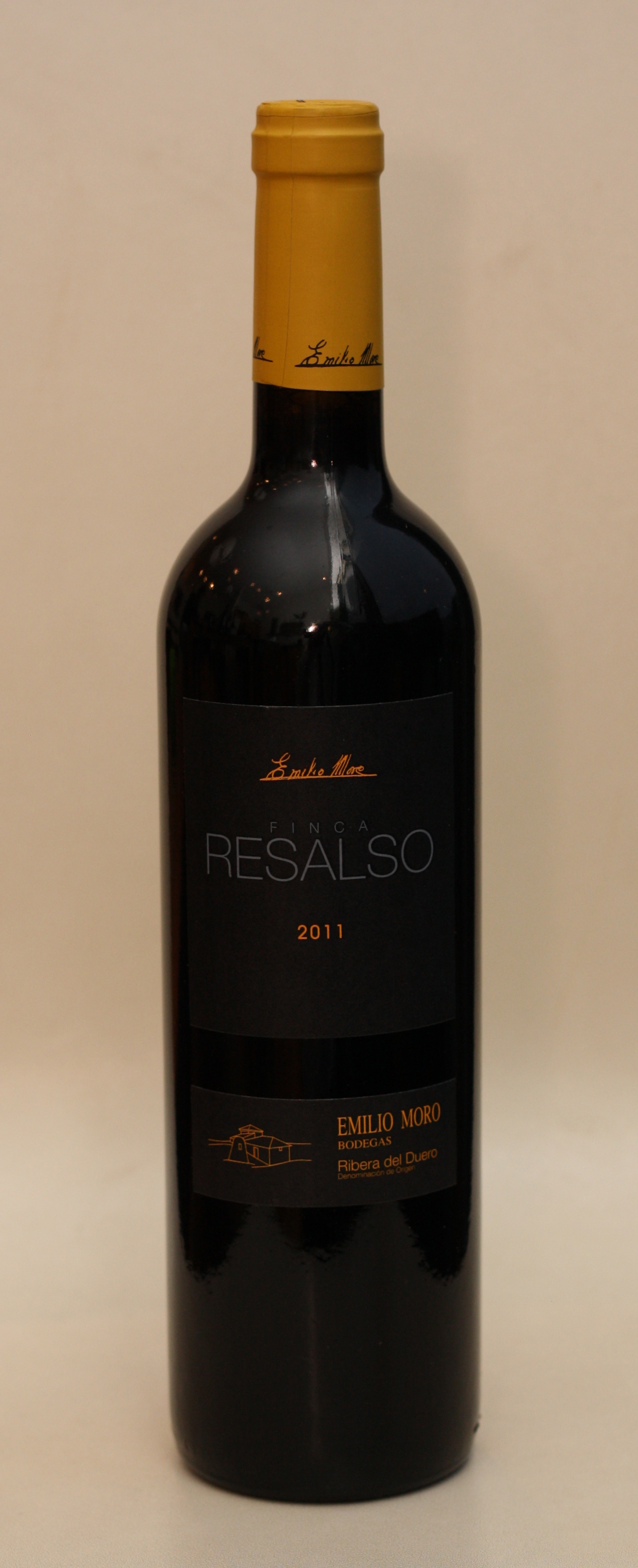 Finca Resalso er nafnið á fyrstu vínekru Emilio Moro í Ribera del Duero á Spáni og er nafn hennar nú notað á þetta vín sem er gert úr ávexti af yngri vínvið af ekrum Moros. Þetta er afskaplega kröftugt og eikað vín, mikil karamella, reykur og leður í nefi í bland við svartan, dökkan ávöxt. Tannískt, lagskipt með flottum sólberjaberjaávexti. Svakalega flott vín fyrir verðið, borgar sig tvímælalaust að opna með fyrirvara og helst umhella. Með rauðu kjöti og ostum.