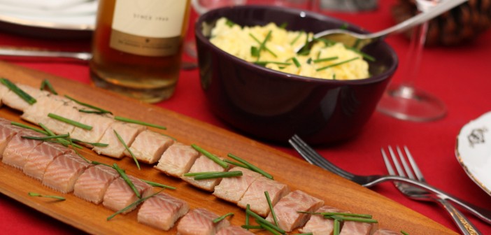Reyktur áll og snafs þykir ómissandi á jólaborðið í Danmörku og Svíþjóð, ekki síst á Skáni í Suður-Svíþjóð. Því miður er ekki algengt að maður finni reyktan ál hér í búðum, en ef þið eigið leið um Kastrup eða þekkið einhvern sem fer þar um er tilvalið að kippa með sér pakka eða tveimur af áli. Það þarf ekkert að gera fyrir álinn sjálfan annað en að skera hann í bita og gott er að hafa eggja hræru með. Hitið smá smjör í potti, pískið saman 4-5 egg og 2 dl. af rjóma. Hitið eggjablönduna í pottinum þar til að hún fer að þykkna, saltið, piprið og bætið vænni lúku af fínt söxuðum graslauk saman við. Meira þarf í sjálfu sér ekki að gera.