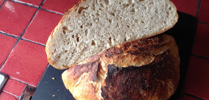Ég hef áður birt uppskrift af súrdeigsbrauði þar sem ég notaði malt. Nú er komið að ósköp venjulegu súrdeigsbrauði með hvítu hveiti – já er það ekki annars algjört eitur í dag? Þeir sem enn borða slíkt og vilja þar með stefna lífi og limum í hættu ættu að prófa þessa uppskrift.