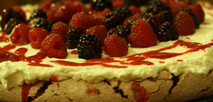 Súkkulaðipavlova með hindberjasósu