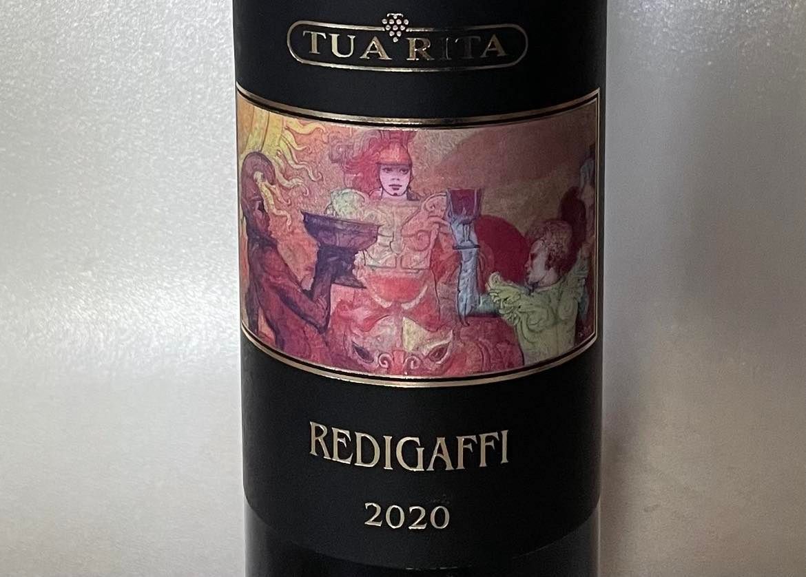 Tua Rita-vínin byrjuðu sem tveggja hektara víngerð hjóna sem ætluðu að dunda sér við víngerð eftir að þau hættu að vinna en urðu fljótt algjör „költ“-vín og með þeim dýrari sem maður finnur á Ítalíu ekki síst þetta vín hér, Merlot-vínið Redigaffi sem varð líka fyrsta ítalska vínið til að f´á fullt hús stiga eða 100 punkta skor hjá Robert Parker. Það byrjaði sem tilraun hjá þeim hjónum, þau tóku tvær barrique-eikartunnur frá árið 1994 af þeim hluta sem þeim þótti vera bestur og töppuðu sérstaklega á flösku.