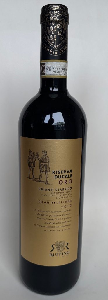Ducale Oro er Chianti Classico Gran Selezione úr þrúgum ræktuðum í Castellina í hjarta héraðsins. Þetta er eitt af hinum klassísku vínum T’oskana en Ruffino framleiddi Riserva Ducale í fyrsta skipti árið 1927. Tuttugu árum síðar þegar hinn frábæri árgangur 1947 leit dagsins ljós var ákveðið að setja á markað sérstaka ofurútgáfu af því víni er bar heitið Oro (gull). Stíllinn hefur þróast með árunum og er nú orðinn mjög alþjóðlegur, auk Sangiovese (80%) eru líka Cabernet Sauvignon og Merlot í blöndunni. Fyrstu tólf mánuðina liggur vínið í steyptum kerjum en síðan tekur við ár í litlum barrique-tunnum og loks ári í stærri eikarámum. Vínið er dimmfjólublátt, nefið dökkt, kirsuber og blóm, dökkt súkkulaði. Þétt og strúktúrerað í munni, kröftug tannín. Vín sem er enn mjög ungt að yfirbragði þótt það sé orðið sex ára, þoli vel geymslu.