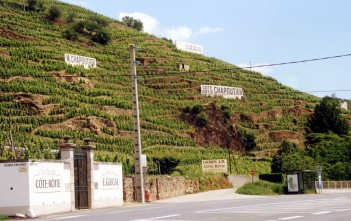 Ef ekið er í suðurátt í gegnum Lyon og Vienne birtast fyrstu vínekrur Rhône-dalsins fljótlega eftir að komið er að þorpinu Ampuis. Í bröttum brekkum er snúa móti suðaustri liggja vínekrur Côte Rôtie, einhvers besta víngerðarsvæðis Frakklands. Côte Rôtie er hinsvegar lítið svæði og ná ekrurnar einungis yfir 180 hektara á 3,5 kílómetra löngu svæði