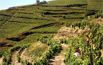 Fyrir ofan bæinn Tain l’Hermitage á austurbakka Rónar, blasir þekktasta ekra Rhône-dalsins við á tígulegri hæð er gnæfir yfir bæinn. Hæðin ber heitið Hermitage og dregur nafn sitt af krossfara, Gaspard de Sterimbourg, sem eftir glæsta sigra á heiðingjum í austurvegi dró sig í hlé og gerðist einsetumaður (á frönsku Ermite) þarna á hæðinni. Einungis