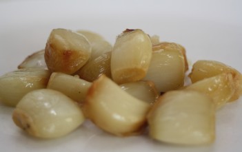 Þetta er gott meðlæti með lambi, nauti og grilluðu kjöti. 500 g steinseljurót og/eða hreðkur 1 skalottulaukur, saxaður smátt 2 dl rjómi 1/2 dl hvítvín ferskt timjan salt og pipar Skrælið steinseljurótina/hreðkurnar. Sjóðið ásamt 1/2 tsk af salti í fimm mínútur. Bræðið smjörið á pönnu og mýkið skalottulaukin. Bætið rótargrænmetinu út á og steikið á
