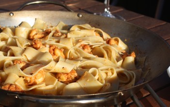 Skelfiskur er í hávegum hafður á Ítalíu og til eru fjölmargar tegundir af pasta með skelfisk. Hér notum við ítalskar aðferðir til að elda íslenskan humar.